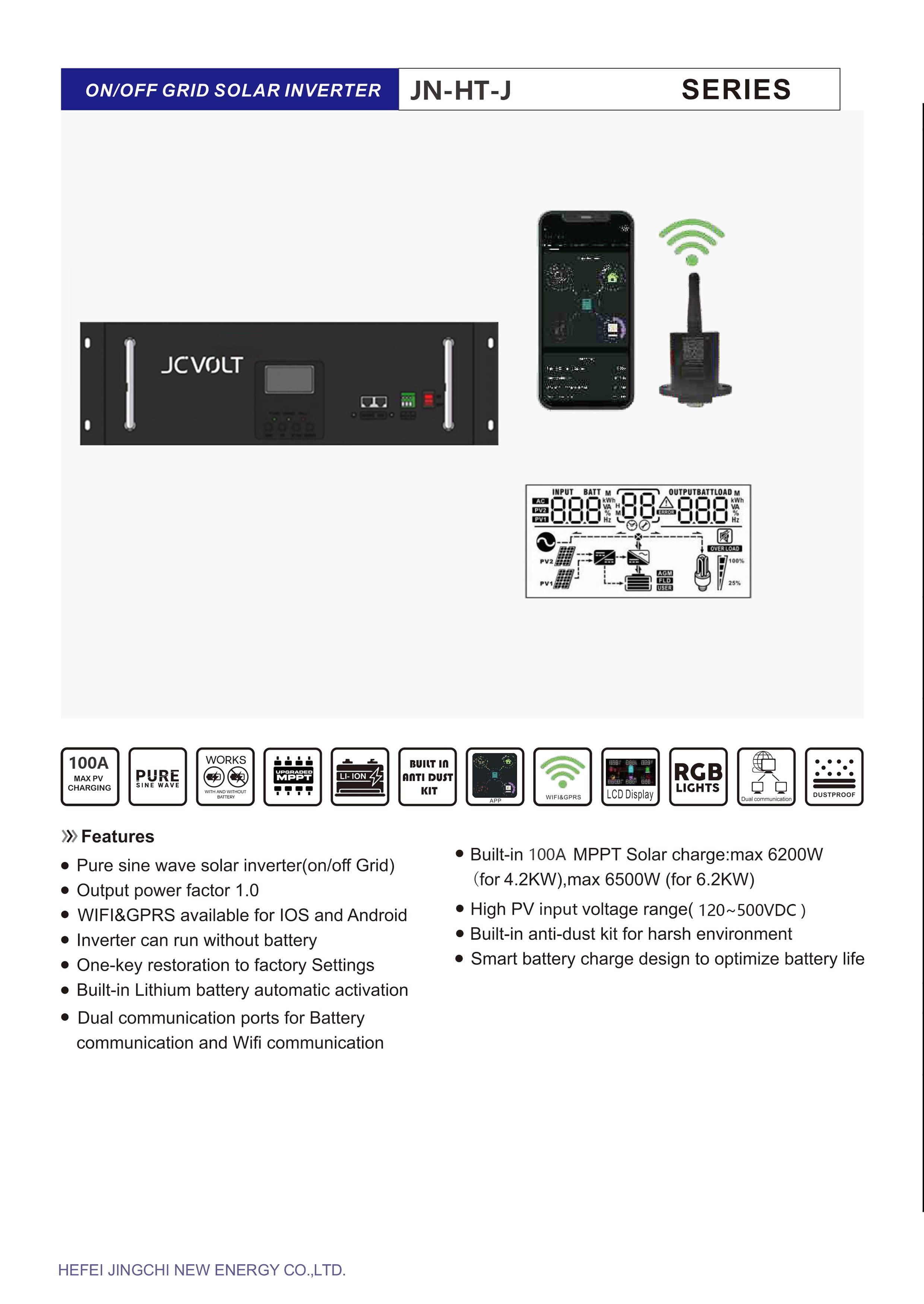JC inverter SP series is widely used in residential and commercial solar energy systems. More than 6000 deep cycles, up to 90% DOD
